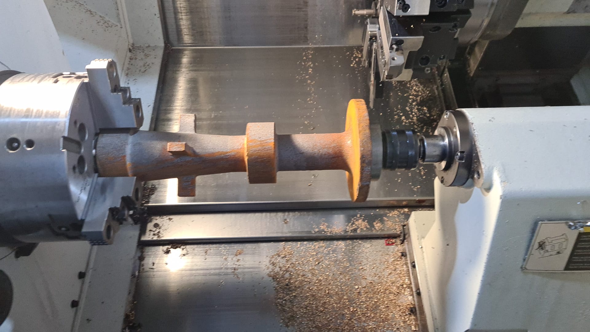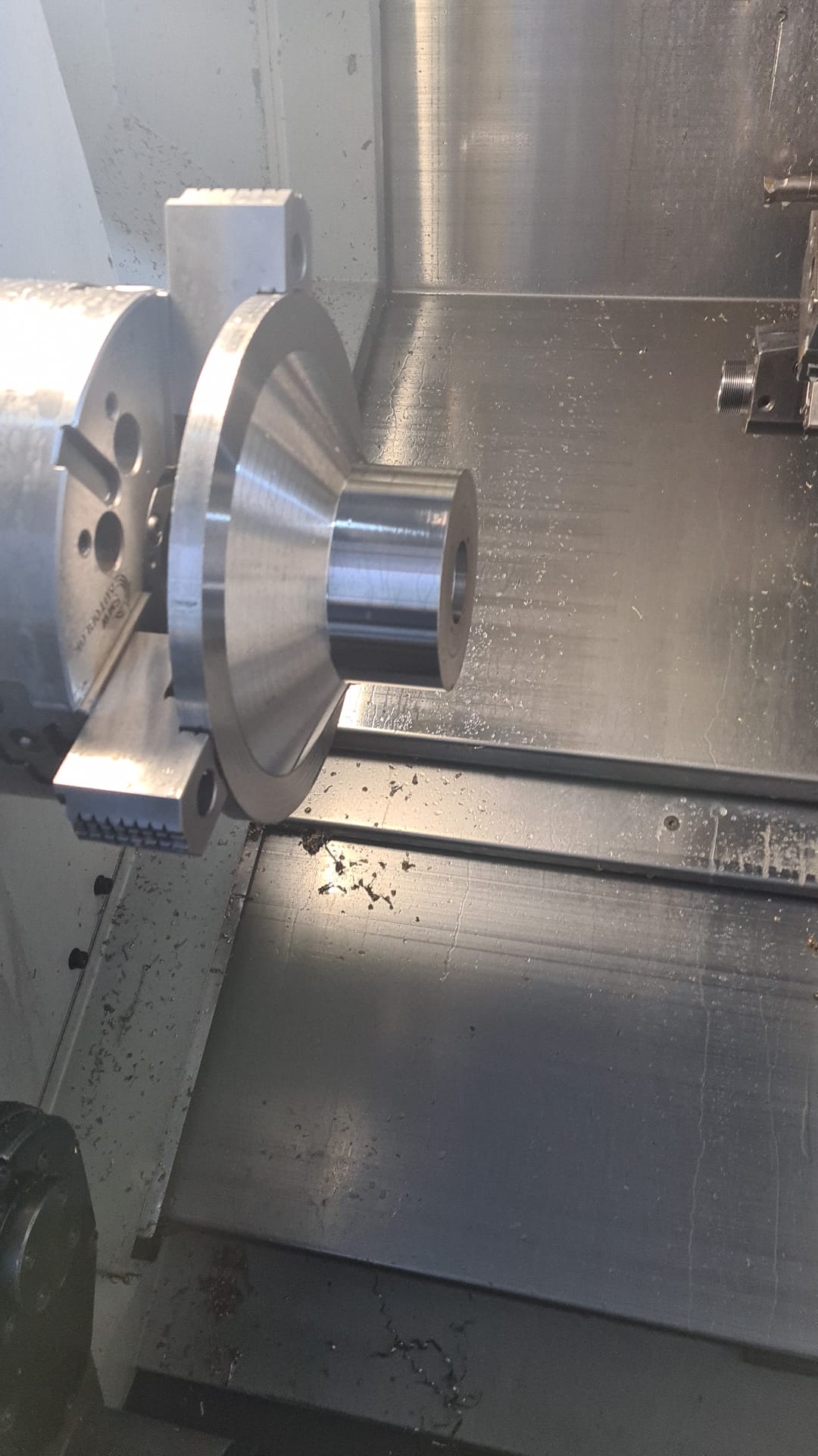 Utilising a massive 15kw spindle, monobloc rigid casting, prismatic guideways and laser compensation in all axis and programmed using state of the art Edgecam CAM software. removing material and making components to tolerances down to 0.005mm is no problem for this Lathe.